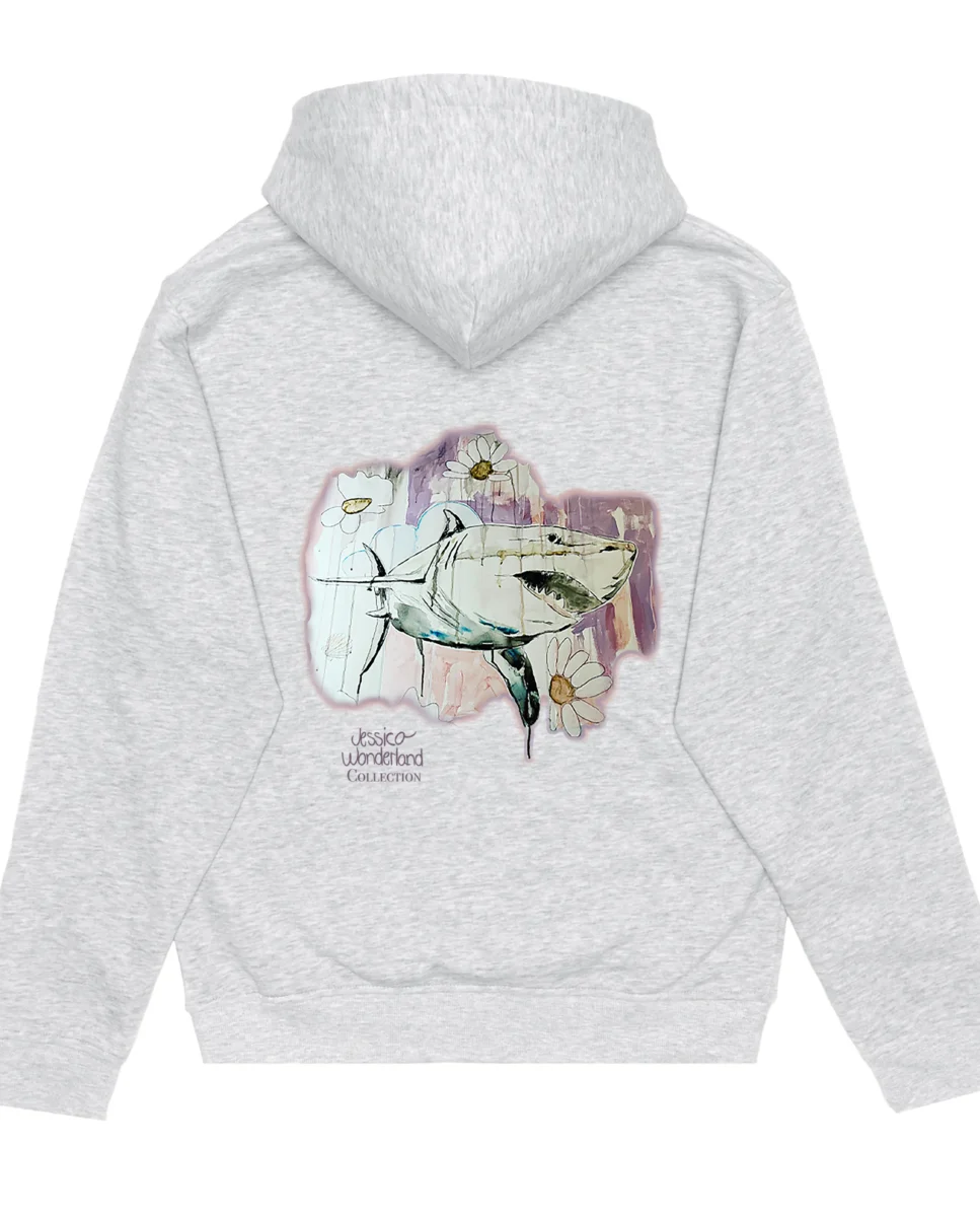 Happy Shark, this light grey artistic hoodie designed by Jessica Wonderland for Based On Art features a refreshing and unexpected artwork: a shark swimming peacefully, fully at ease in its natural element. The image offers a calm and joyful perspective, inviting viewers to see beyond appearances.