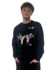 Printed on a premium black crewneck, the illustration stands out with intensity. The dark background enhances color, contrast, and detail, allowing the artwork to glow visually. This piece transforms the sweatshirt into wearable contemporary art, where light and emotion take center stage.