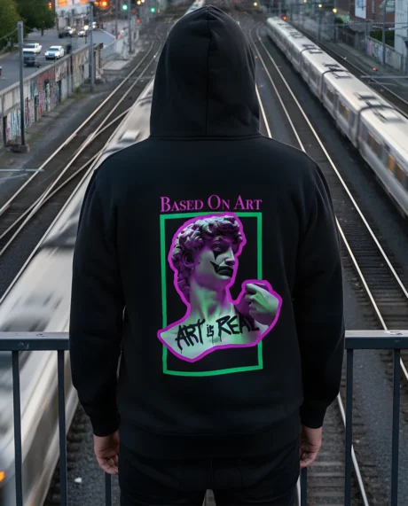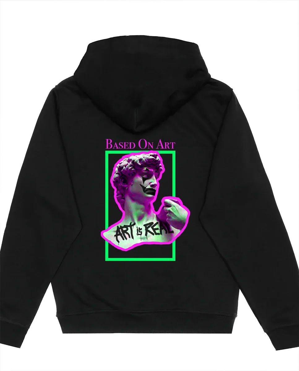 This Based On Art hooded sweatshirt blends comfort, culture, and character. Designed for those who see fashion as a form of expression, it reflects the brand’s mission: bringing art out of museums and into everyday urban life.