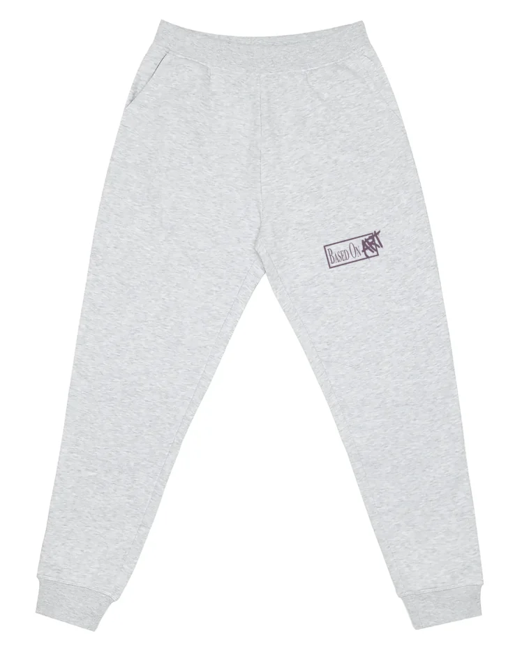 Ultra-comfortable light grey joggers featuring a bold purple logo. Clean, versatile, modern — your go-to bottom.