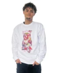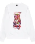Printed on a premium white crewneck, the artwork benefits from strong contrast and visual clarity. The light background enhances color depth and detail, giving the sweatshirt a clean yet impactful aesthetic. This piece turns clothing into wearable contemporary art, designed to command attention.