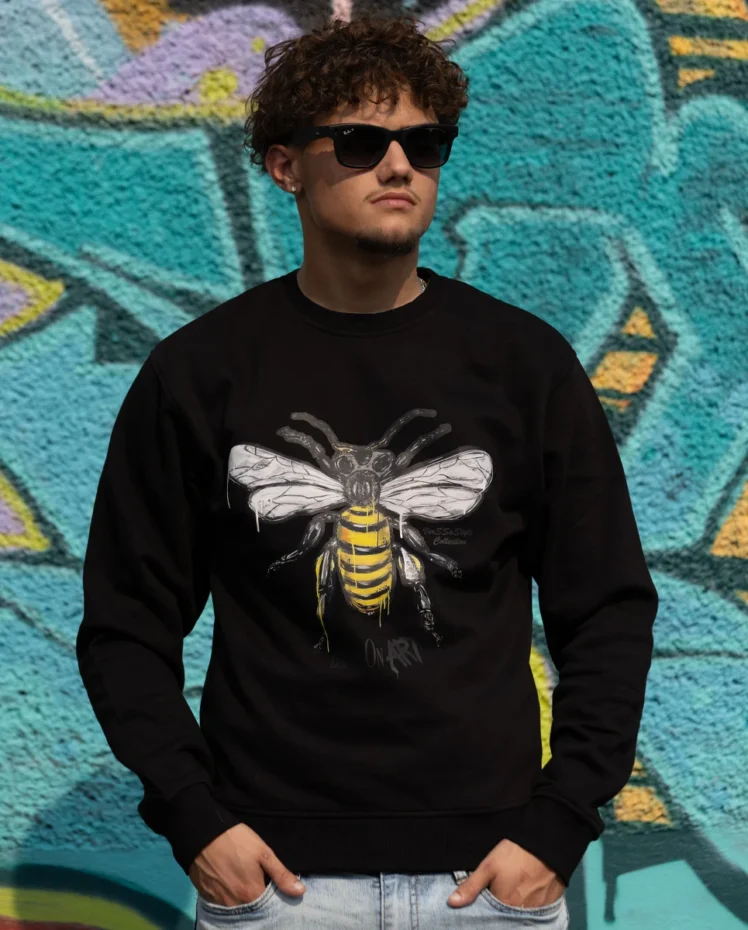 The Bee is a black artistic crew neck inspired by the creative vision of VerSSaStyle, reimagining the bee through a modern abstract design. Traditionally a symbol of hard work, perseverance, and community, the bee is transformed here into a bold visual statement that bridges nature and contemporary art.
