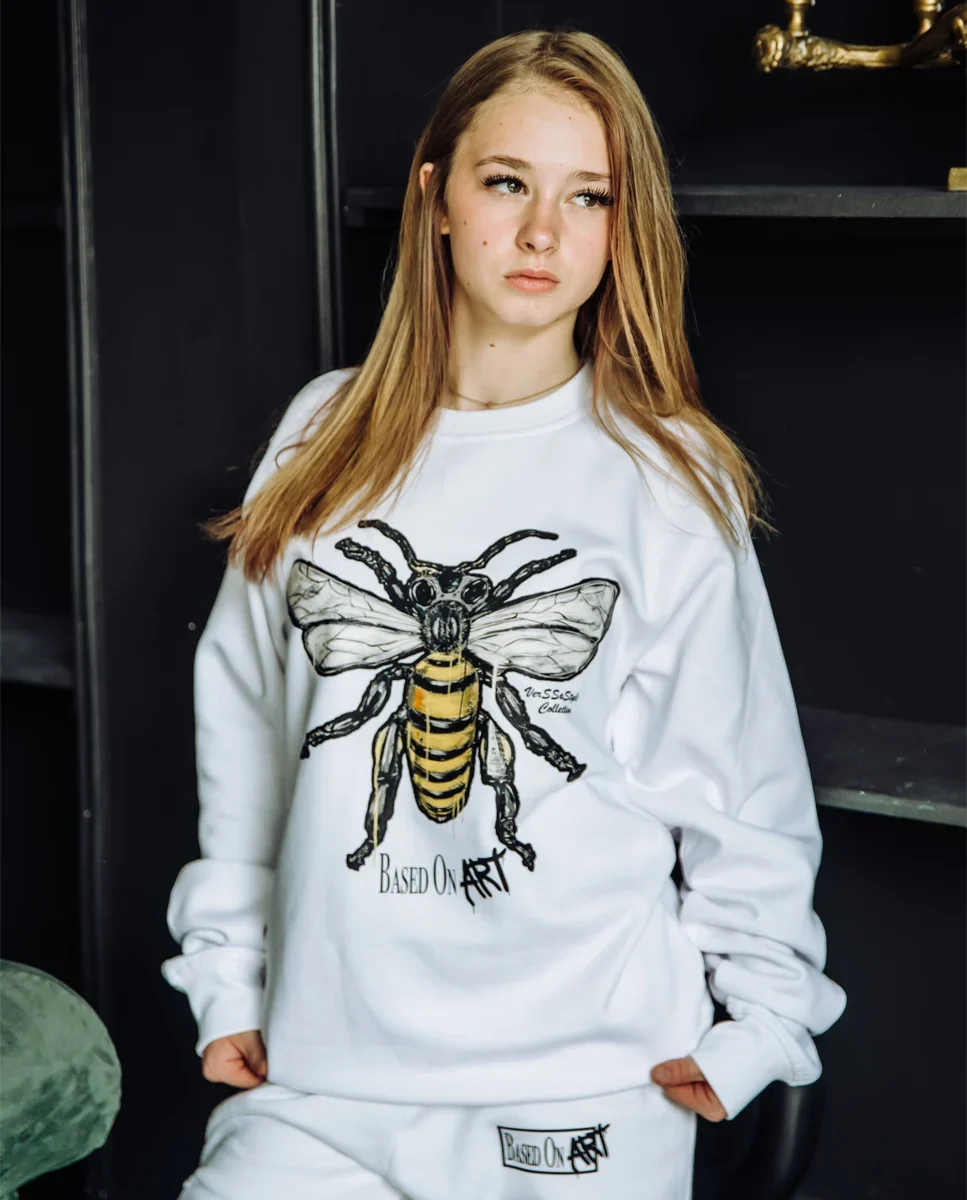 The Bee is a white artistic crewneck by Based On Art, inspired by the creative universe of VerSSaStyle. This artwork reinterprets the bee through an abstract and contemporary visual language, transforming a natural symbol into a bold urban art statement.