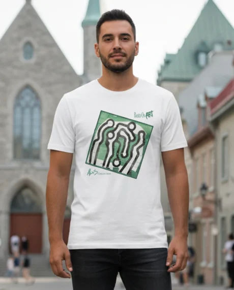 Printed on a modern art T-shirt, the design fits seamlessly into the world of art-inspired streetwear and wearable contemporary art. Staying true to the philosophy of Based On Art, this piece transforms an artistic concept into a garment that communicates meaning, identity, and visual impact.