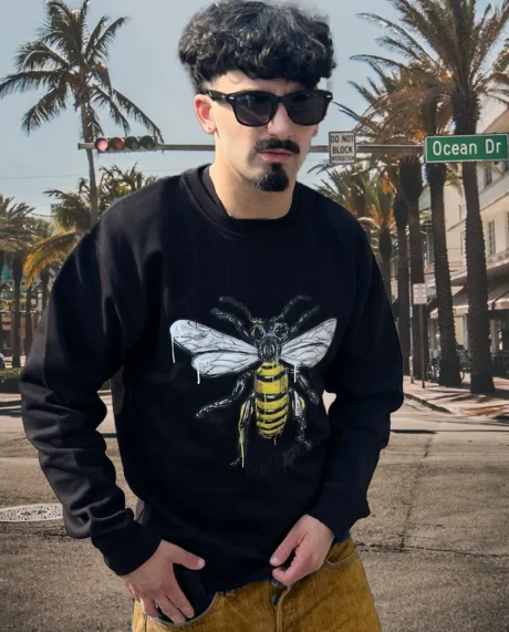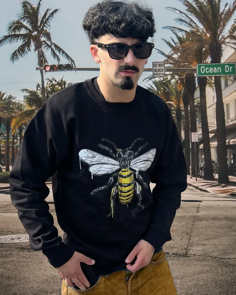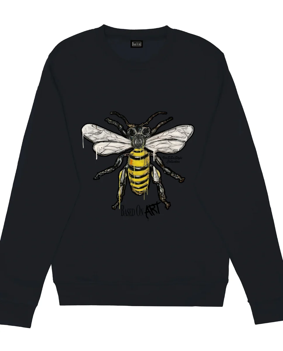 Voici “L’Abeille”, un crewneck noir unique inspiré de l’œuvre de Verssastyle. L’artiste a choisi de revisiter l’abeille avec une touche abstraite et moderne, symbole de travail, de persévérance et de communauté.